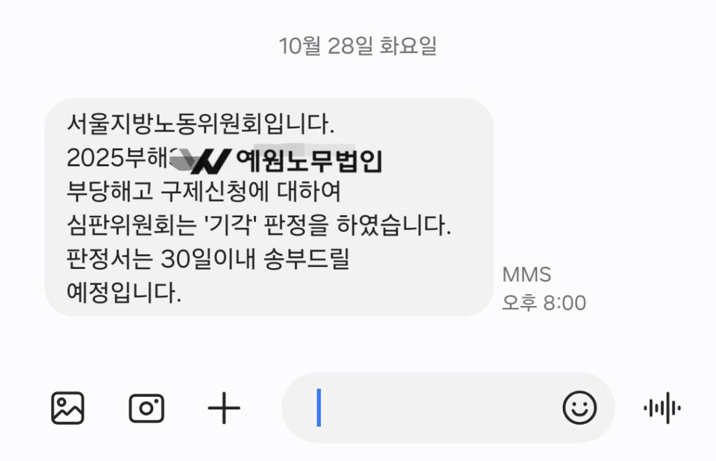 그리고 부당해고 판정여부는 심문회의 당일 8시에 문자로 우선 통보되는데요.