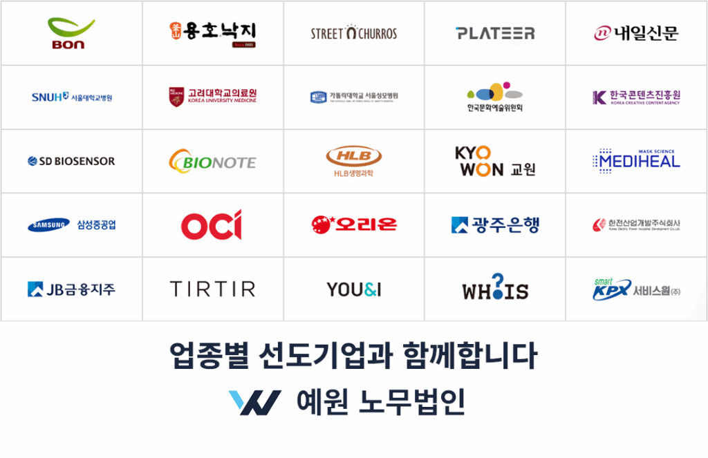 * 예원노무법인은 삼성중공업, 본죽, 한국콘텐츠진흥원, 서울대학교 병원 등