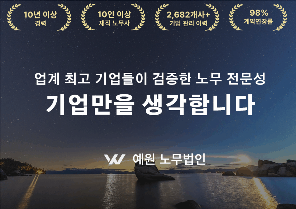 안녕하세요 기업 및 사업주 전문으로 노무서비스를 제공하고 있는 예원노무법인입니다.